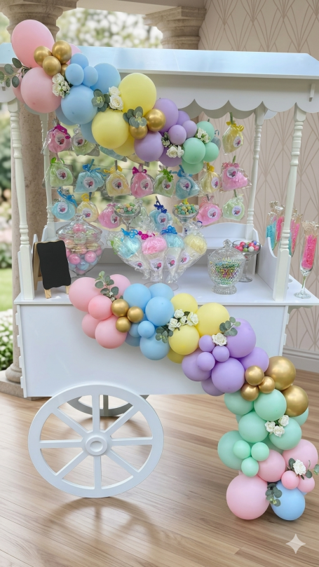 The basic cart includes the following, add ons such as flower garland, ballon garland, signs and more, find this at the bottom of the page.